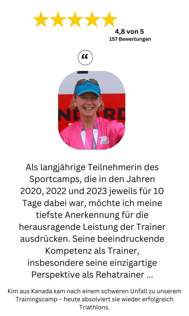 „Perfekt organisiertes Trainingscamp : individuelles Coaching, strukturierte Trainings-Einheiten, kleine Gruppen und herzliche Betreuung – effektiv, erholsam, unvergesslich.“